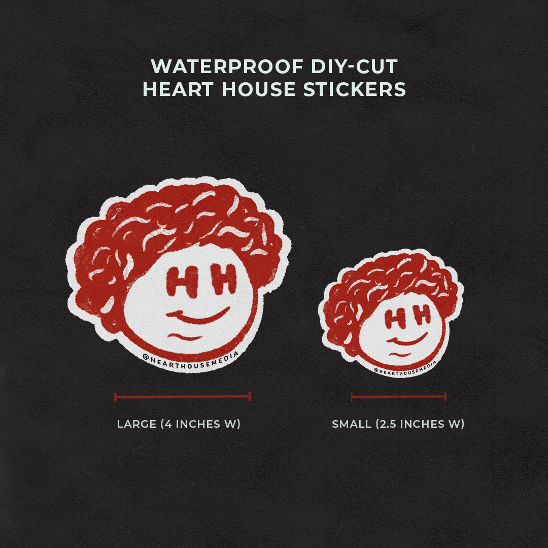 A playful, DIY-cut sticker featuring the Heart House Logo Mascot. Fun fact, my logo is a doodle version of me :)/